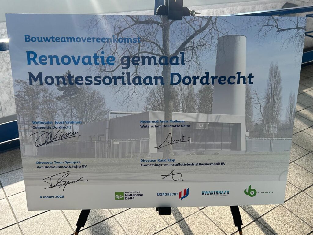 Deze week hebben wij de bouwteamovereenkomst ondertekend voor de grootschalige renovatie van het hoofdrioolgemaal Maria Montessorilaan in Dordrecht.